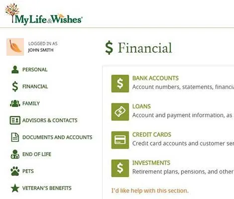 The Legacy Vault provides a secure and organized way to store and manage your financial information, including bank accounts, loans, credit cards, investments, and more. By keeping all your financial details in one encrypted location, you ensure that your loved ones have easy access to critical information when they need it most. Whether it’s tracking assets, liabilities, or key account details, this feature helps streamline financial management and ensures a smooth transition of responsibility in case of an emergency. With The Legacy Vault, your financial records are always protected and accessible to those who matter most.