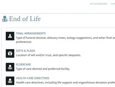 The Legacy Vault provides a secure and organized way to document your end-of-life wishes, ensuring your loved ones have clear guidance during difficult times. From funeral arrangements and healthcare directives to eldercare plans and special gifts, you can outline every detail according to your wishes. By storing this information in one accessible and protected place, you relieve your family of the burden of uncertainty and give them the gift of clarity and peace of mind. With The Legacy Vault, you can rest assured that your final wishes will be honored exactly as you intended.